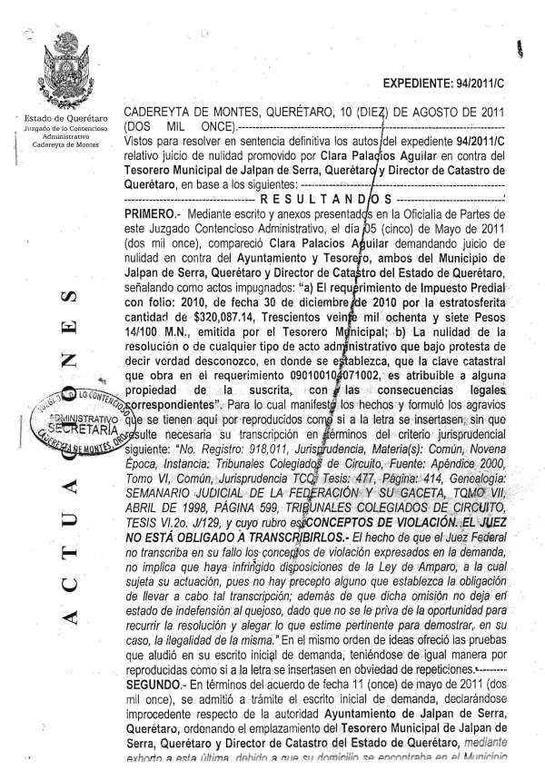 Resolución de juicio de nulidad de contencioso administrativo local. Nulidad de cobro de adeudo de impuesto predial sobre un predio.