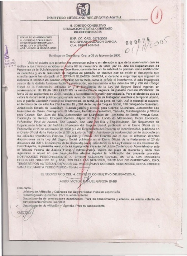 Resolución a recurso de inconformidad en el IMSS por negativa de pensión y orden para valorar constancia de inscripción del IMSS a derechohabiente.