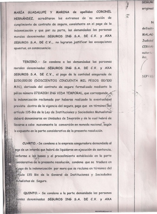 Sentencia ganada contra aseguradora por incumplimiento de pago de póliza de seguro de vida.